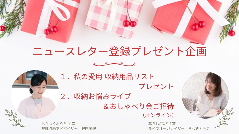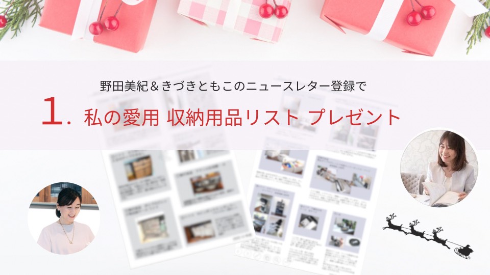 先日、ライフオーガナイザーの きづきともこちゃん と話していたとき、「みなさんに何かクリスマスの贈り物をしたいよね」と盛り上がり、コラボでプレゼント企画をすることになりました!