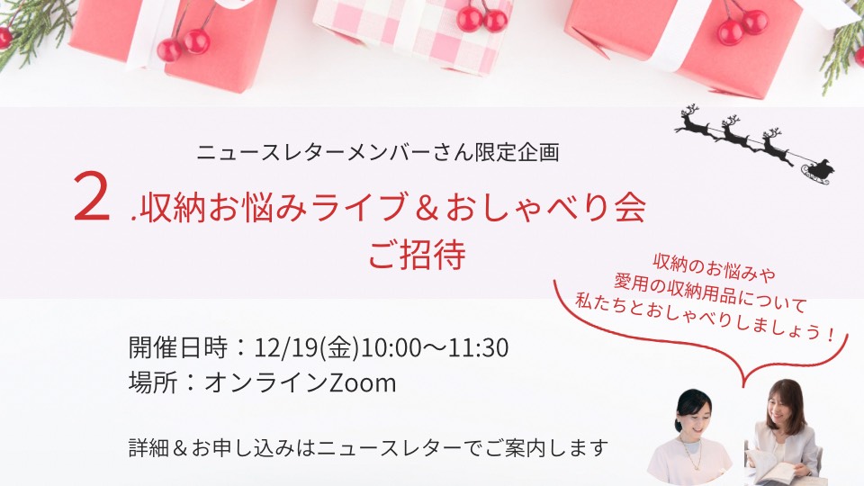 ② 収納お悩みライブ&おしゃべり会(オンライン)へご招待